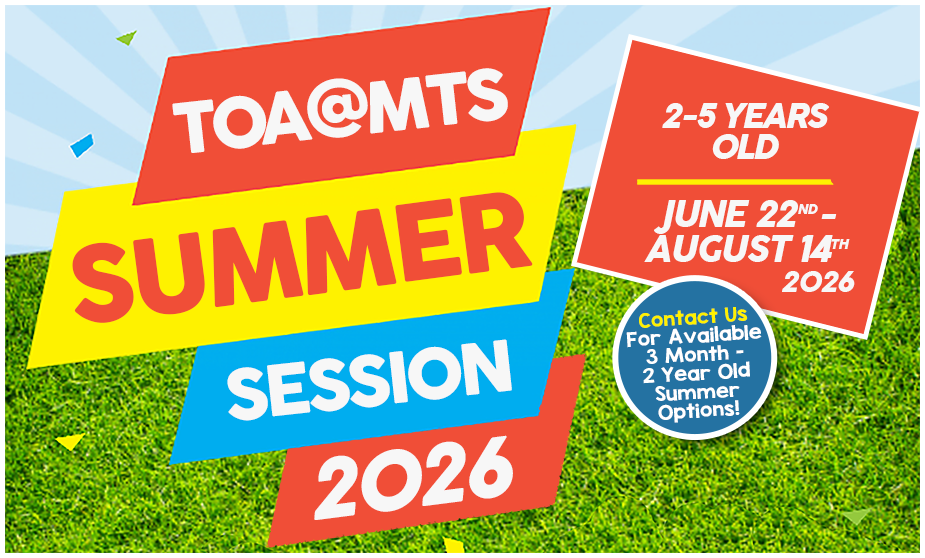 What’s the Summer Session? It’s a continuation of the same great TOA@MTS program, attention to detail and exceptional staff that you’ve come to love during the other 10 months of the year! Our Summer Session includes flexible options for enrollment of children 2 years old through 5 years old (those entering Kindergarten in the fall) and includes full hot lunch served fresh every day, special days, water play, unique programs and so much more.